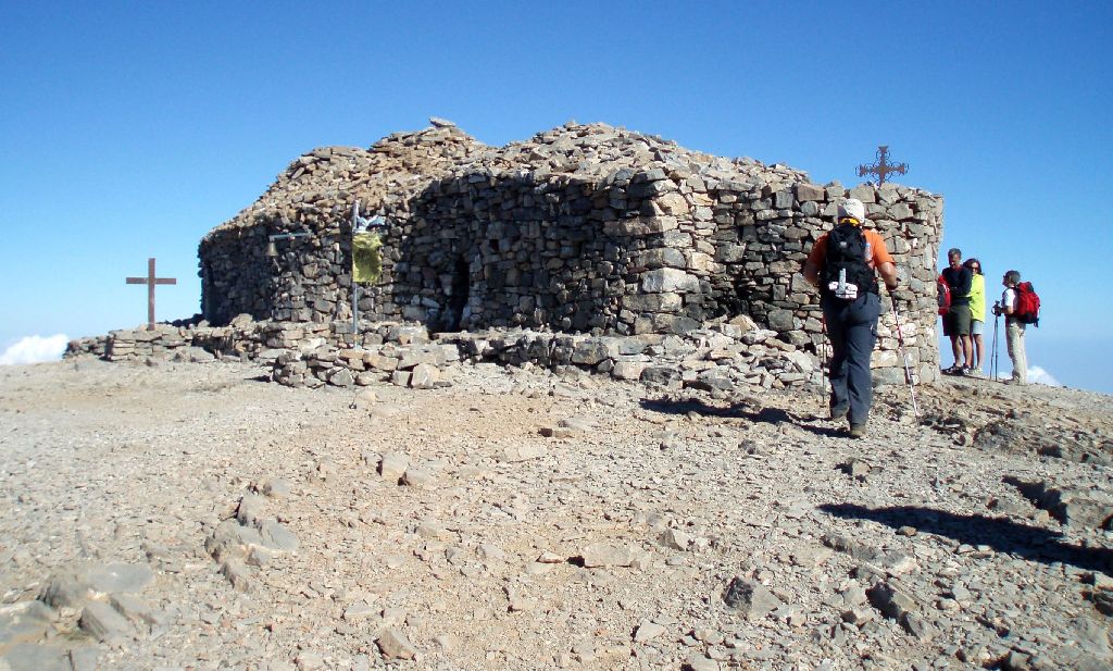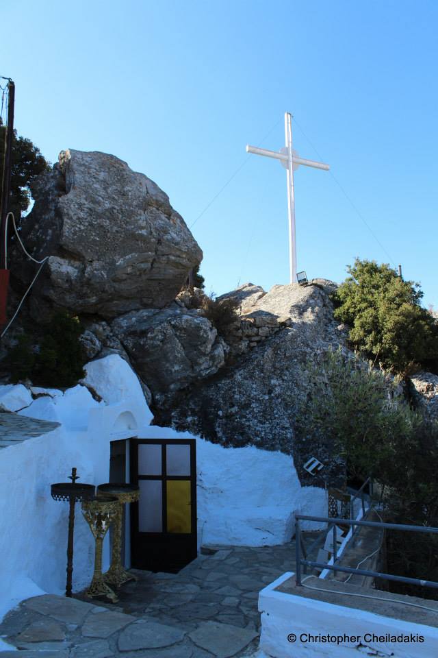 Στα 2.456 μέτρα υψόμετρο, το εκκλησάκι του Τιμίου Σταυρού διαιωνίζει την πανάρχαια συνήθεια λατρείας των Ιερών Κορυφής. Το ξερολιθικό κτίσμα που αποτελείται από δύο κυκλικής κάτοψης χώρους, για τη διαμονή των προσκυνητών και τον κυρίως χώρο λατρείας, έχει σε κάτοψη το σχήμα θήκης βιολιού. Είναι μετόχι της Μονής Δισκουρίου (ανήκει στο Δήμο Μυλοποτάμου) που βρίσκεται στη ρίζα της βόρειας πλαγιάς του Ψηλορείτη, και γιορτάζει στις 14 Σεπτεμβρίου, ημέρα κατά την οποία προσκυνητές από ολόκληρη την Κρήτη ανεβαίνουν για προσκύνημα.