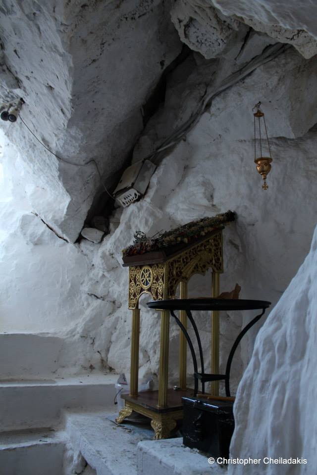 Η ανάβαση στον Κάστελλο γίνεται από την πλατεία που είναι τα καφενεία και χρειάζεται να ανέβουμε περίπου 230 σκαλοπάτια για να φτάσουμε στην κορυφή του απότομου βράχου. Στην κορυφή του Κάστελλου υπάρχει ένα εντυπωσιακό σπήλαιο αρκετά βαθύ στο οποίο κατεβαίνουμε με σκαλοπάτια. Μέσα στο σπήλαιο υπάρχει σήμερα ο σπηλαιώδης ναός του Τιμίου Σταυρού που γιορτάζει κάθε χρόνο στις 14 του Σεπτέμβρη και γίνεται μεγάλο πανηγύρι στο χωριό.