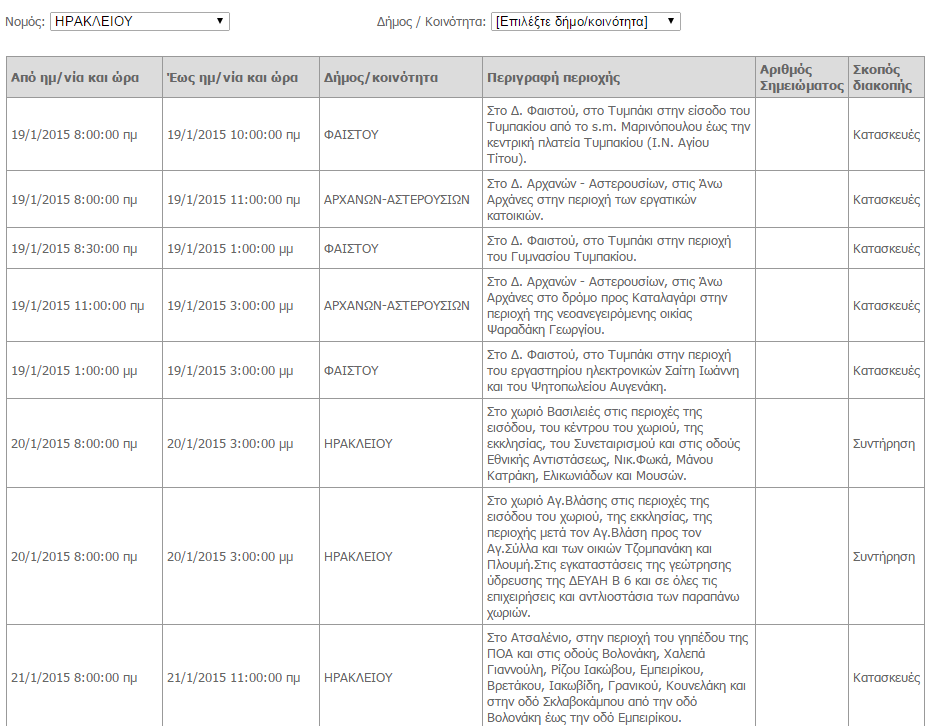 Δείτε στον παρακάτω πίνακα τις προγραμματισμένες διακοπές ρεύματος που θα σημειωθούν σε περιοχές του Ηρακλείου από σήμερα 19/1 μέχρι και την Τετάρτη 21/1, σύμφωνα με το πρόγραμμα του ΔΕΔΗΕ.