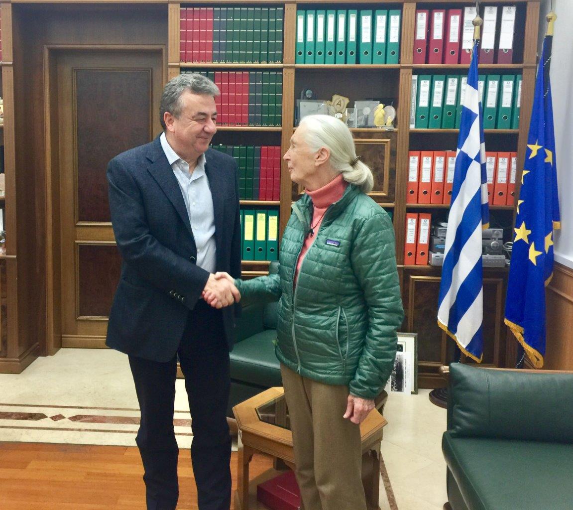 Με τη διεθνούς φήμης πρωτευοντολόγο, ηθολόγο και Πρέσβειρα Ειρήνης των Ηνωμένων Εθνών Dr. Jane Goodall συναντήθηκε σήμερα ο Περιφερειάρχης Κρήτης Σταύρος Αρναουτάκης.