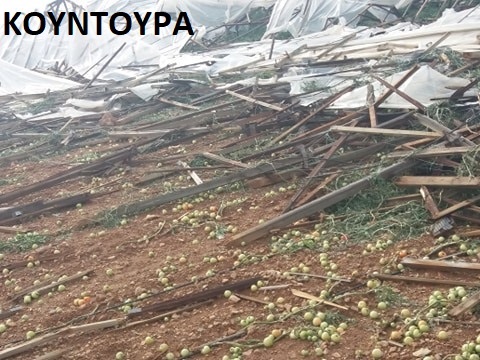 Θερμοκήπια, συνολικής επιφάνειας 700 στρεμμάτων, έχουν υποστεί ζημιά στο υλικό επικάλυψής τους που έχει γίνει διάτρητο από τις ριπές του χαλαζιού που έπεσε με σφοδρότητα στην περιοχή.