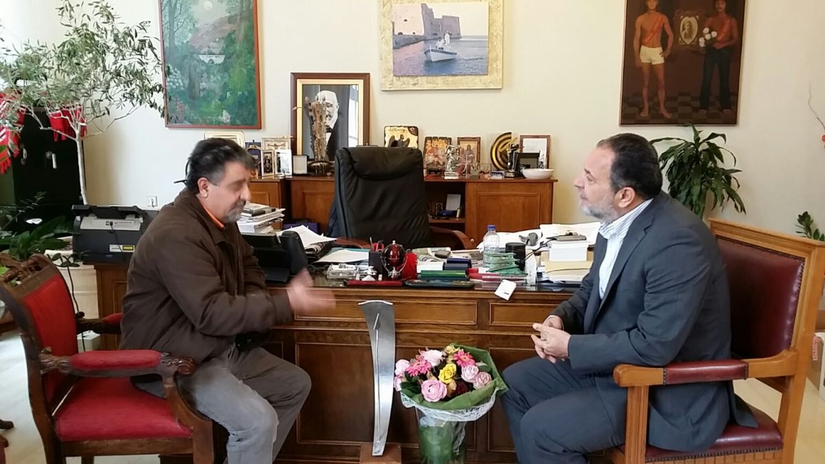 Συνεργασία είχε σήμερα ο Δήμαρχος Ηρακλείου κ. Γιάννης Κουράκης με τον Αντιπρόεδρο του Σωματείου Εκπαιδευτών Υποψηφίων Οδηγών Ν.Ηρακλείου κ. Λευτέρη Μιχελάκη για διάφορα ζητήματα που απασχολούν το κλάδο.Στα πλαίσια αυτά όπως δήλωσε ο κ. Κουράκης παραχωρήθηκε δωρεάν από το Δήμο στη Περιφέρεια ένα τμήμα εξωτερικά του Παγκρητίου Σταδίου προκειμένου να χρησιμοποιηθεί ως χώρος εξέτασης των υποψηφίων οδηγών δικύκλων.