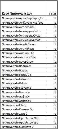 Τα κενά των νηπιαγωγείων είναι τα εξής:
