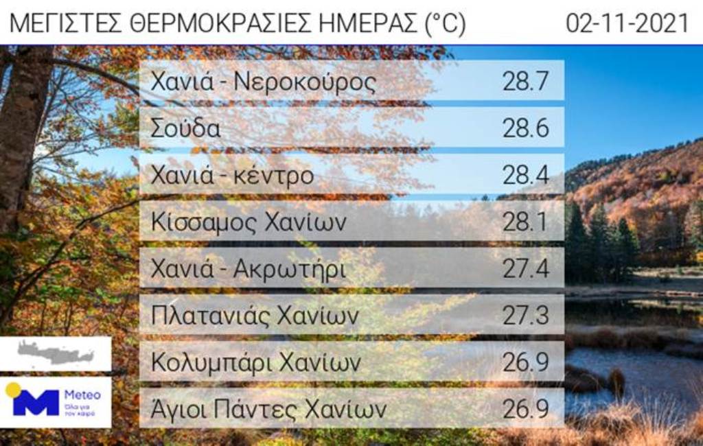 Οι 8 υψηλότερες τιμές θερμοκρασίας που κατέγραψαν οι σταθμοί του Εθνικού Αστεροσκοπείου Αθηνών/meteo.gr στο νησί δίνονται στον πίνακα που ακολουθεί.