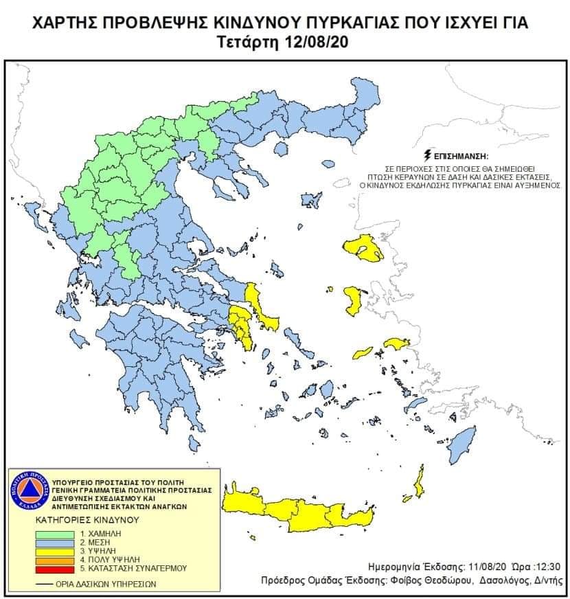 Κι αυτό γιατί σύμφωνα με τον χάρτη πρόβλεψης της Γενικής Γραμματείας Πολιτικής Προστασίας για τον κίνδυνο εκδήλωσης πυρκαγιάς, στην Κρήτη, ο κίνδυνος θα είναι κατηγορία 3, δηλαδή υψηλός.