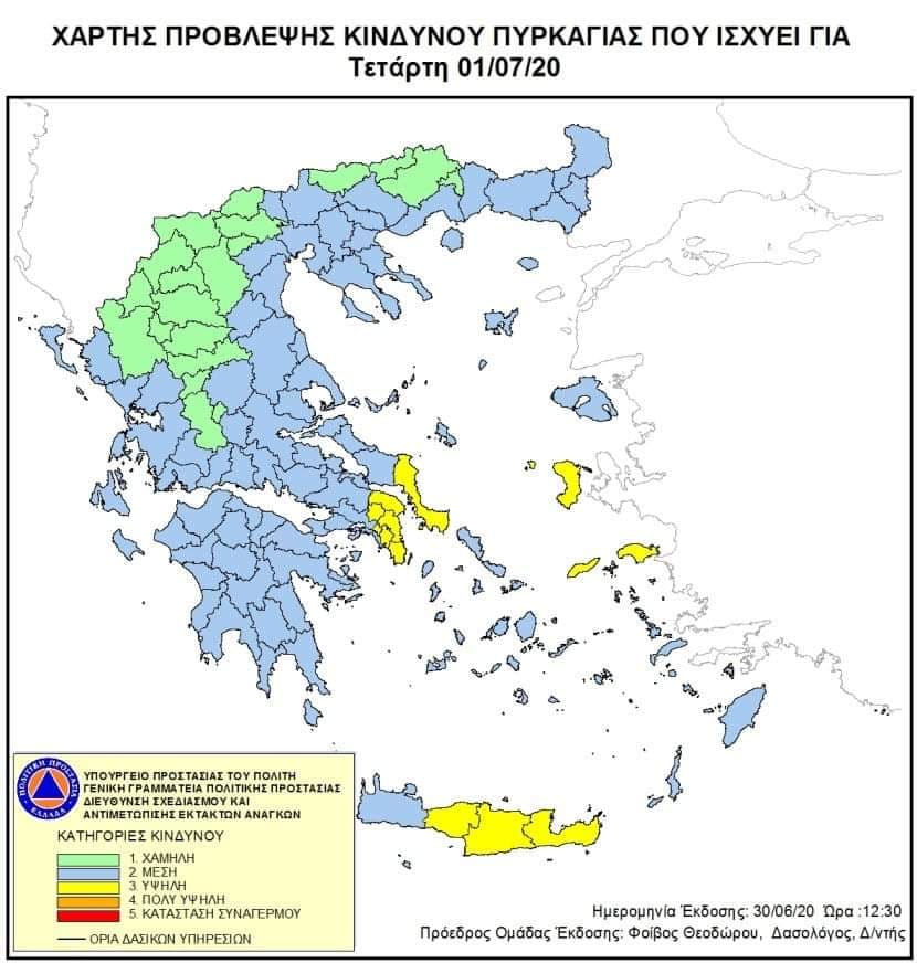 Συγκεκριμένα και σύμφωνα με τον χάρτη πρόβλεψης που εκδίδει καθημερινά η Γενική Γραμματεία Πολιτικής Προστασίας, η κατηγορία κινδύνου είναι στο 3 για τις Περιφερειακές Ενότητες Ρεθύμνου, Ηρακλείου και Λασιθίου.