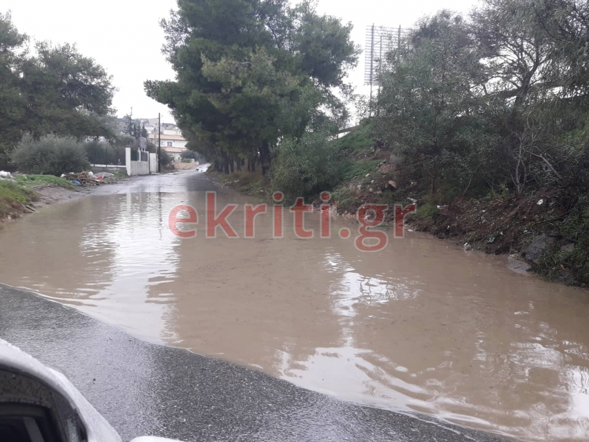 Οδός Φιοντορ Ντοστογιέφσκι στο Ηράκλειο. Ένας παράλληλος δρόμος της Εθνικής Οδού, πλημμυρισμένος από τη δυνατή νεροποντή που έπεσε και σήμερα.