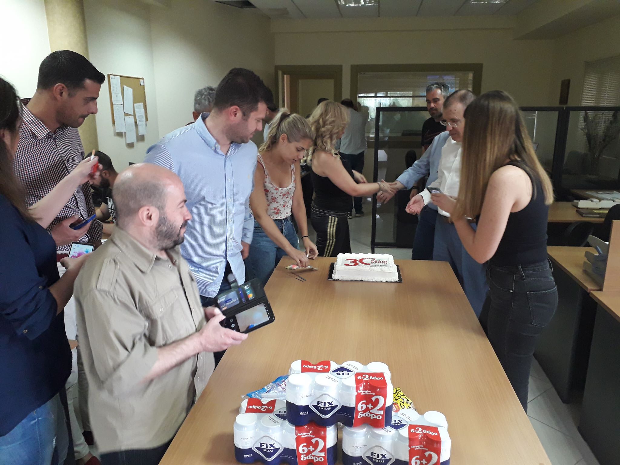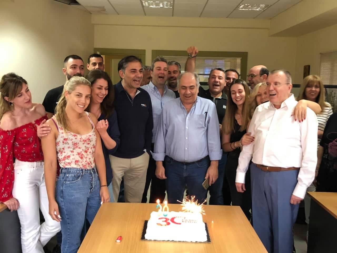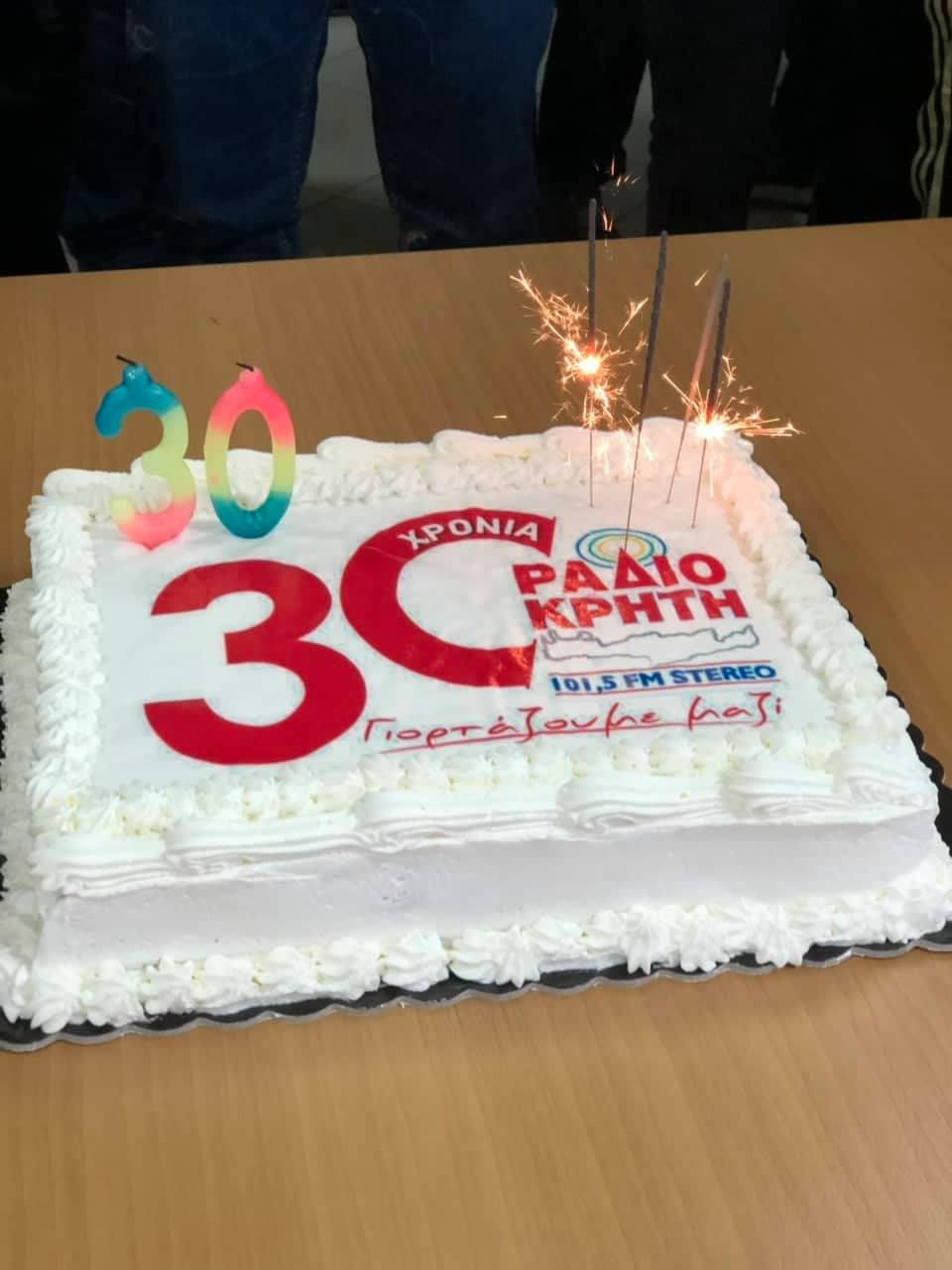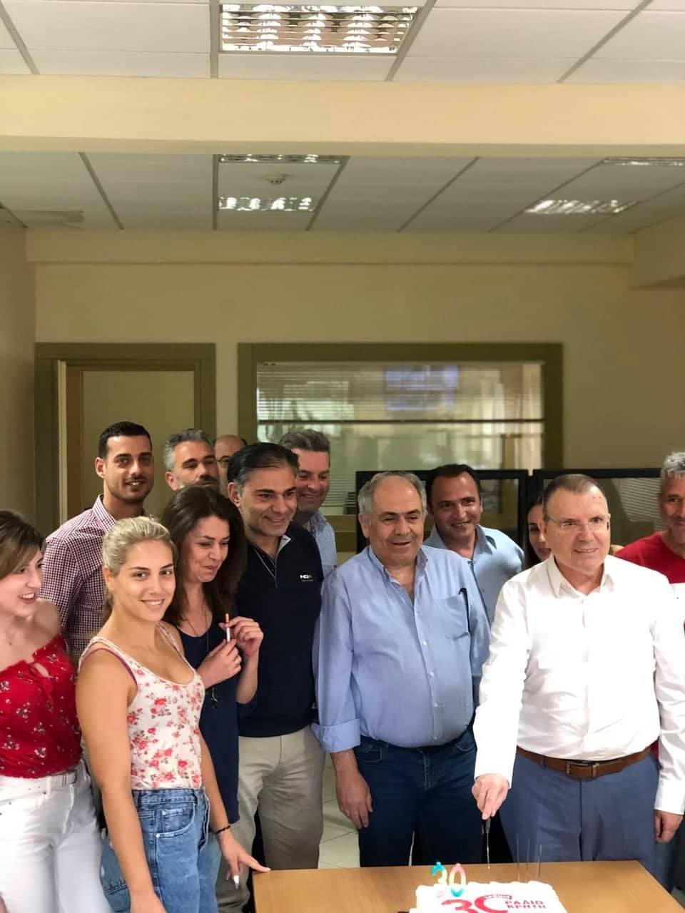 Μέσα σε γιορτινή ατμόσφαιρα, οι εργαζόμενοι του Ράδιο Κρήτη 101,5 έκοψαν την τούρτα για τα 30α γενέθλια του σταθμού.