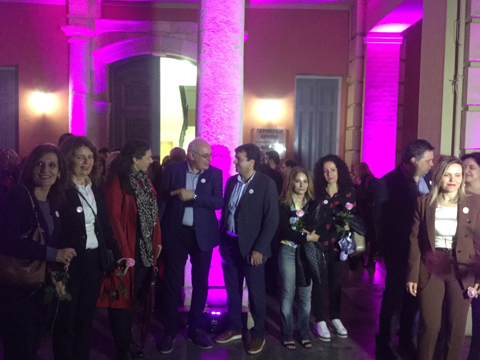 Στην σημαντικότητα τής πρόληψης, αλλά και στις πρωτοβουλίες και δράσεις της Περιφέρειας μαζί με τους φορείς, εθελοντικές οργανώσεις, αναφέρθηκε στον σύντομο χαιρετισμό του, παρουσία θεσμικών εκπροσώπων, γυναικείων συλλόγων, εθελοντριών, ο Γιώργος Πιτσούλης. Η συμμετοχή όλων, όπως είπε, στην κοινή προσπάθεια, που δεν περιορίζεται μόνο στον μήνα πρόληψης, είναι σημαντική, στέλνοντας ένα δυνατό μήνυμα ζωής προς όλες τις γυναίκες. Παράλληλα ο κ Πιτσούλης αναφέρθηκε στον σημαντικό ρόλο που διαδραματίζει στον τομέα πρόληψης η κινητή μονάδα μαστογραφίας της Περιφέρειας που τα τελευταία χρόνια “οργώνει” το νησί μας-ακόμα και στις πλέον απομακρυσμένες περιοχές πραγματοποιώντας δωρεά μαστογραφίες στις γυναίκες. Στό ιδιαίτερα σημαντικό θέμα της πρόληψης αναφέρθηκε και η Αντιδημαρχος Ρένα Παπαδάκη στον σύντομο χαιρετισμό της, προσθέτοντας ότι ο Δήμος για τον κοινό στόχο, αλλά και σε όλα τα ευαίσθητα κοινωνικά ζητήματα συνεργάζεται με την Περιφέρεια, τους φορείς, εθελοντικές οργανώσεις κ.α Παράλληλα, η κα Παπαδάκη έδωσε συγχαρητήρια στην Περιφέρεια στον κ Πιτσούλη, και σε όλους τους συμμετέχοντες για την διοργάνωση της εκδήλωσης σε συνέχεια της καμπάνιας της πρόληψης που υλοποιεί η Περιφέρεια Κρήτης. Ο κ Πιτσούλης αφού ευχαρίστησε την κα Παπαδάκη για την καλή συνεργασία με τον Δήμο ,απευθυνόμενος σε όλους, πρόσθεσε: «Κλείνοντας το μήνα πρόληψης αποφασίσαμε να φωταγωγήσουμε ροζ το κτήριο της Περιφέρειας Κρήτης σηματοδοτώντας την αδιάληπτη συνέχιση της καμπάνιας «Είναι στο Χέρι Μου!» Μια καμπάνια με πολλαπλές δράσεις σε συνεργασία με φορείς της Κρήτης που στόχο έχει μέσω της διάχυσης γνώσης και της ευαισθητοποίησης να κινητοποιήσει τις γυναίκες στην υιοθέτηση συμπεριφορών πρόληψης.
