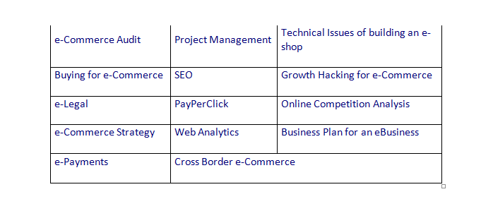 Strategy case studies. Εργαλεία και τεχνικές του e-Business στην πράξη, μέσα από τη μελέτη και επίλυση πραγματικών προβλημάτων στη διαμόρφωση e-Commerce στρατηγικής για e-shops ή brands που δραστηριοποιούνται στην ελληνική αγορά.