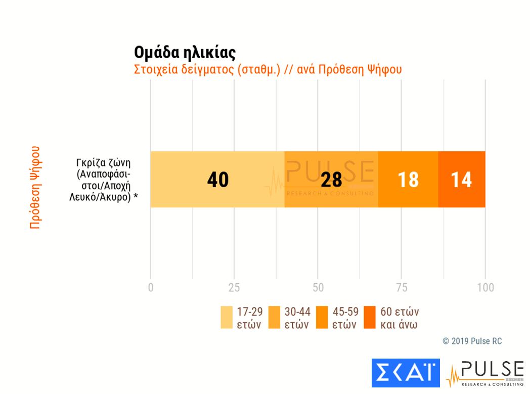 Σε μία ακτινογραφία της γκρίζας ζώνης, δηλαδή όσοι είναι αναποφάσιστοι ή σκέφτονται την αποχή, το λευκό και το άκυρο, παρουσιάζεται το προφίλ τους αλλά και ο τρόπος σκέψης τους. Η πλειονότητα είναι γυναίκες ηλικίας 17 έως 29 ετών οι οποίες προτιμούν μία κυβέρνηση συνεργασίας με κορμό την ΝΔ ή μία κυβέρνηση μεγάλου συνασπισμού, πιστεύουν ότι η ΝΔ θα κερδίσει τις εκλογές και θεωρούν ότι ούτε ο Κυριάκος Μητσοτάκης ούτε ο Αλέξης Τσίπρας είναι κατάλληλοι για την πρωθυπουργία.
