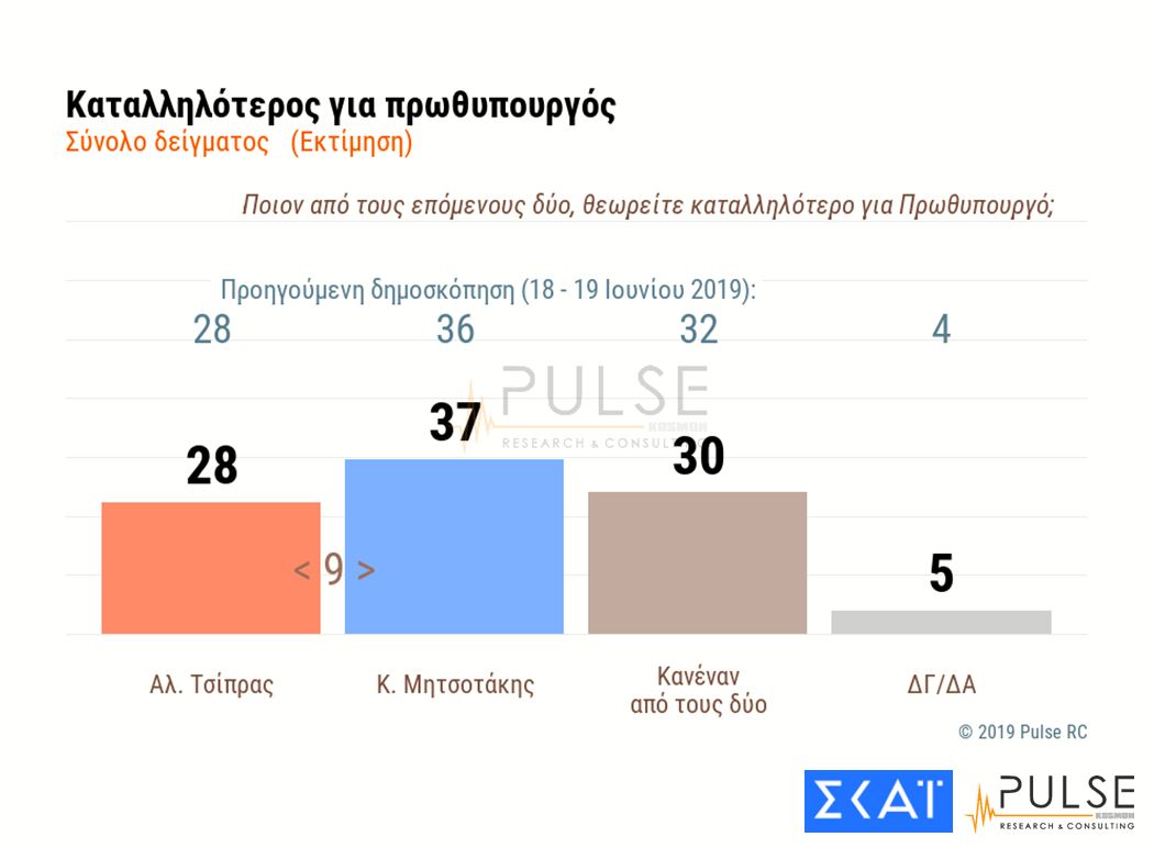 Καταλληλότερος για πρωθυπουργός ο Κυριάκος Μητσοτάκης