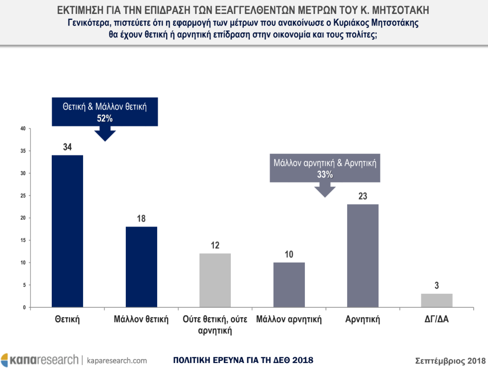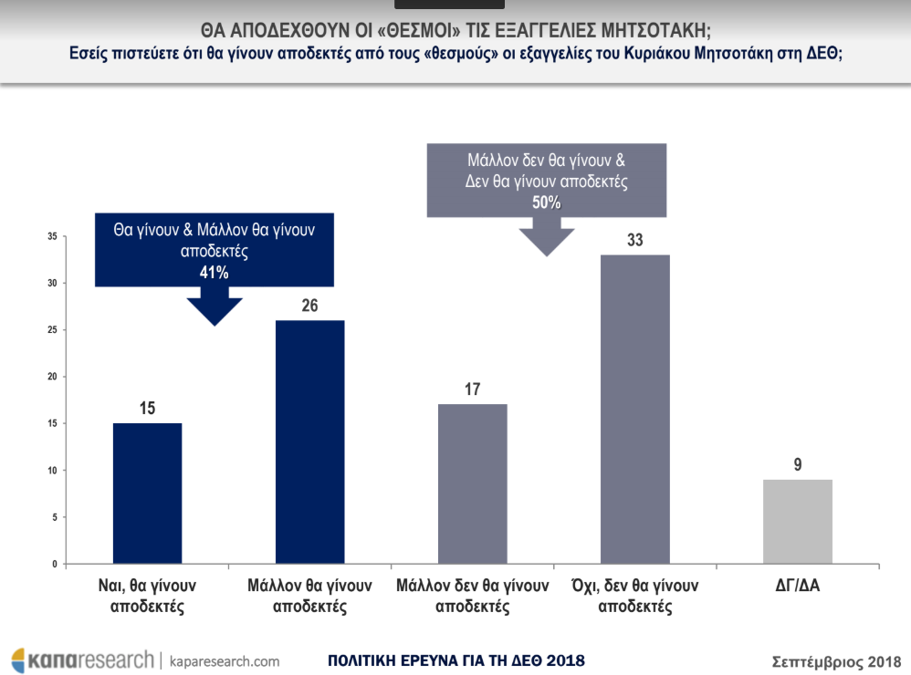 Τέλος, οι περισσότεροι από τους πολίτες που ελαβαν μέρος στη δημοσκόπηση, πιστεύουν ότι οι εξαγγελίες του Κυριάκου Μητσοτάκη στη 8η Διεθνή Έκθεση Θεσσαλονίκης είναι προς τη σωσατή κατεύθυνση.