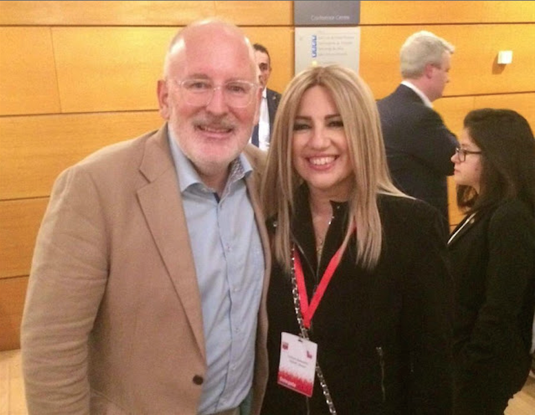 «Θιασώτης της Ευρωπαϊκής Ένωσης, μαχητής του κράτους δικαίου ένας άνθρωπος που έχει εργαστεί σκληρά για να υπερασπίσει τις αξίες της Ευρώπης. Ένας Ολλανδός με μεσογειακό ταπεραμέντο και ελληνική ψυχή: ο αυριανός πρόεδρος της Ευρωπαϊκής Επιτροπής, ο σοσιαλιστής Φρανς Τίμμερμανς», πρόσθεσε προτού καλέσει τον κ. Τίμμερμανς στο βήμα.