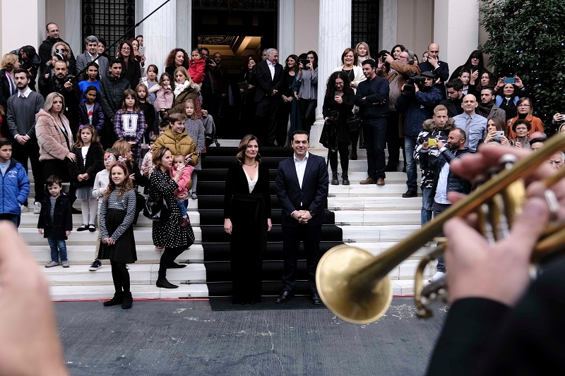 Θερμό ήταν το καλωσόρισμα στην είσοδο του Μεγάρου Μαξίμου και από την σύζυγο του πρωθυπουργού Μπέτυ Μπαζιάνα η οποία υποδέχτηκε δια χειραψίας τον κάθε ένα ξεχωριστά δίνοντας τις δικές της ζεστές ευχές για καλή χρονιά.