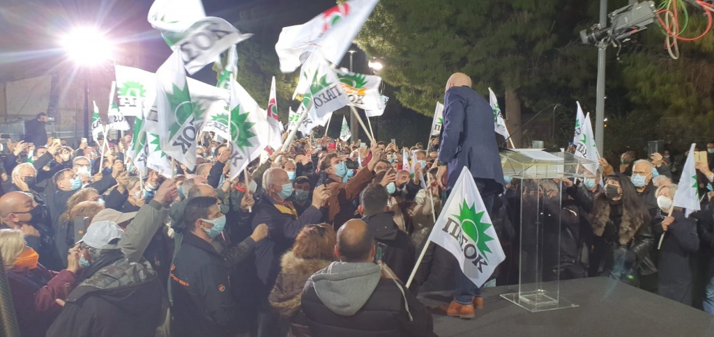 Η Αθηνά Λινού βρέθηκε στην ομιλία του Γιώργου Παπανδρέου και μάλιστα φωτογραφήθηκε με αρκετά στελέχη του ΚΙΝ.ΑΛ. κρατώντας μια σημαία του ΠΑΣΟΚ.