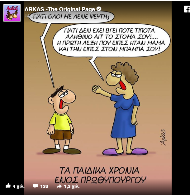 Δύο νέα σκίτσα δημοσίευσε στην επίσημη σελίδα του στο Facebook ο Αρκάς δίνοντας συνέχεια στα «παιδικά χρόνια ενός πρωθυπουργού».