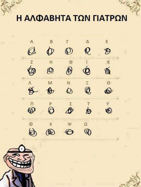 Η φωτογραφία που ακολουθεί εξηγεί -χιουμοριστικά- την Αλφαβήτα των γιατρών.